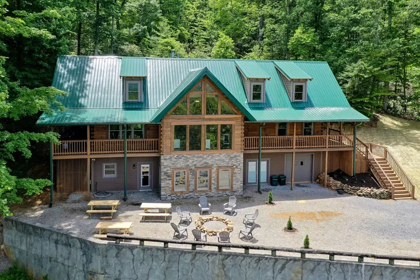 This beautiful lodge sleeps 15 people and has a gorgeous view. Amenities include a large firepit area with picnic tables, hot tub, pool table, video games and movie room.